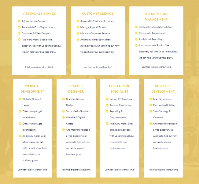 During a free consultation we review your goals and current workload, then recommend a tailored plan—whether it’s general admin help, design work, or specialized roles like collections or customer support.